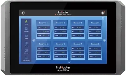 Le contrôleur NFS-2 de TrolMaster est l'un des contrôleurs d'irrigation les plus avancés disponibles aujourd'hui. Le NFS-2 est un contrôleur multifonctionnel qui peut contrôler plusieurs électrovannes et pompes d'irrigation. Le NFS-2 peut également surveiller plusieurs capteurs d'eau qui peuvent mesurer le pH, l'EC / PPM, la température et le capteur de contenu en eau. Il existe également un nouveau débitmètre optionnel DFW-1 qui remplit plusieurs fonctions. Chacune des électrovannes et des pompes peut être "liée" pour fonctionner ensemble afin que plusieurs zones de culture puissent être contrôlées par un seul NFS-2. Lorsqu'il est combiné avec les capteurs optionnels AMP-3, WCS-1 et WCS-2 et le nouveau débitmètre DFW-1, le NFS-2 permet à l'utilisateur de surveiller jusqu'à 50 capteurs et de recevoir des notifications mobiles si un problème est détecté par le système. Le NFS-2 a été créé pour permettre aux utilisateurs de personnaliser leur cycle d'irrigation et de pouvoir contrôler les événements d'irrigation en utilisant soit le débitmètre numérique DFM-1, les capteurs de contenu en humidité WCS-1 ou WCS-2, soit de simples minuteries. Chaque appareil contrôlé par le NFS-2 peut concevoir un nombre illimité d'"événements" d'irrigation chaque jour de 24 heures.
