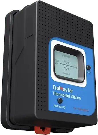 Les stations thermostatiques TS-1 sont conçues pour remplacer un thermostat connecté à une unité CVC conventionnelle de refroidissement uniquement. Le TS-1 est câblé au système CVC en utilisant le même câble de thermostat basse tension et dispose du câblage standard codé par couleur comme la plupart des thermostats. Le Hydro-x permet des réglages séparés pour le jour et la nuit pour chacun des (4) modules TS afin que plusieurs systèmes CVC puissent être contrôlés par un seul système Hydro-X.