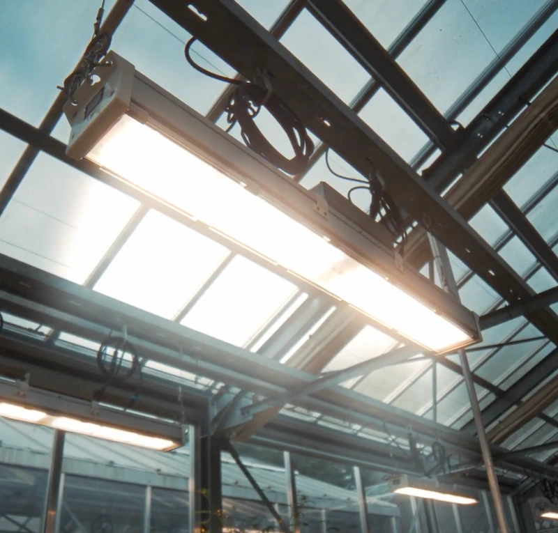 Chaque serre a été équipée de deux sondes lumineuses PAR, offrant une gestion précise de l’éclairage pour deux zones distinctes (côté gauche et côté droit).